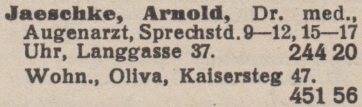 Arnold Jaeschke. Książka adresowa z 1931 roku. Zbiory Pomorskiej Biblioteki Cyfrowej.