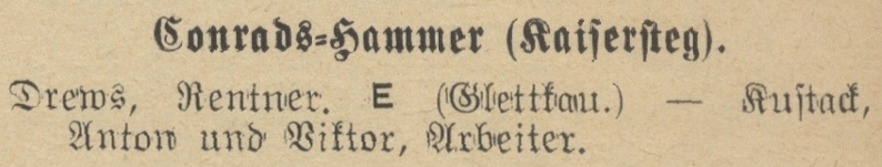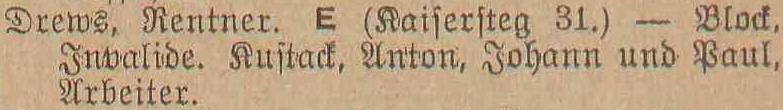 Hugo Drews (Kaisersteg 31). Książka adresowa gminy Oliwa z 1915 roku. Zbiory Pomorskiej Biblioteki Cyfrowej.