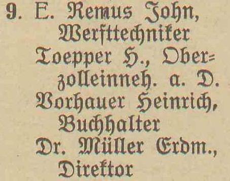 Remus, John, inżynier stoczniowy w stanie spoczynku (Werfttechniker a. D.).