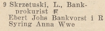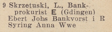 Leo Skrzetuski. Książka adresowa z 1927 roku. Zbiory Pomorskiej Biblioteki Cyfrowej.