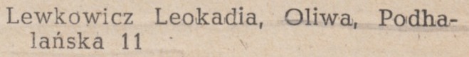 Lewkowicz Leokadia.Wykaz lekarzy i pielęgniarek. Poznaj Gdańsk. Przewodnik-Informator z 1949 roku. Zbiory Piotra Leżyńskiego.