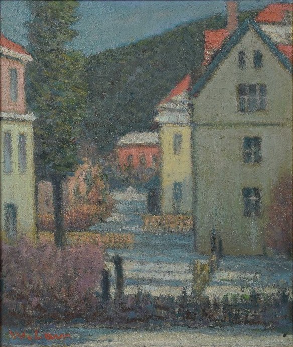 Widok w kierunku ul. Leśnej (po lewej nr 6 z ul. Słonecznej). Lata 20. XX w. (Danziger Haus Kalender 1958 - str 31). Internet: www.danzig-online.pl.
