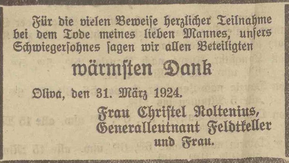 Feldtkeller. Olivaer Zeintung nr 77 z 31. 03. 1924 r.