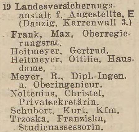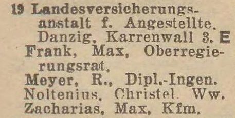 Od co najmniej 1925 roku od około 1939 roku budynek był własnością (LVA) Landesversicherungsanstalt für Angestellte Danzig (ubezpieczenia emerytalne samozatrudnionych).