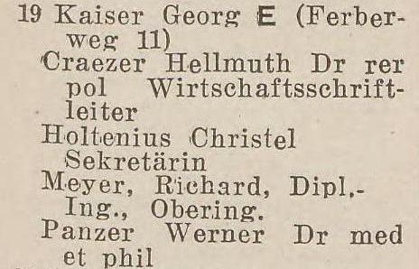 Richard Meyer, Werner Panzer. Książka telefoniczna z 1937 roku. Zbiory TPG Strefa Historyczna WMG.