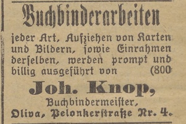 W 1901 roku letników przymował Knop (Johannes), Pelonker Straße 4, (Olivaer Nachrichten, ).