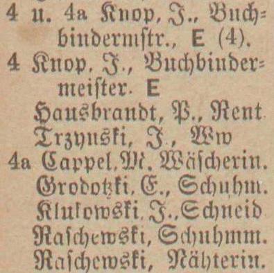 Margarete Knop. Książka adresowa gminy Oliwa z 1916 roku. Zbiory Mirosława Piskorskiego.