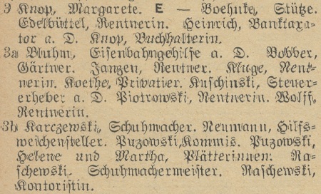 Książka adresowa z roku (Pelonkerstraße 3b):