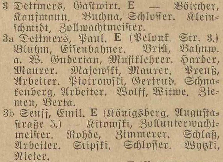 Eugen Detmers. Emil Senff. Książka adresowa z 1926 roku. Ze strony: wiki-de.genealogy.net.