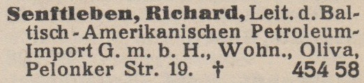 Baltisch - Amerikanische Petroleum - Import - G.m.b.H. Dyrektor Richard Senftleben.