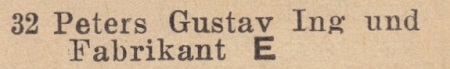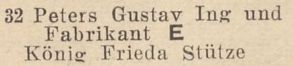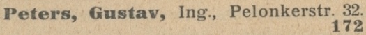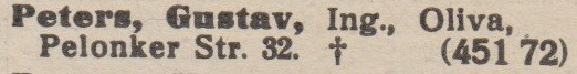 Gustav Peters. Książka adresowa z 1926 roku. Ze strony: wiki-de.genealogy.net.