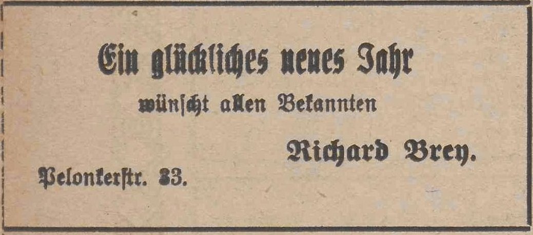 Richard Brey. Podziękowania noworoczne, Olivaer Zeitung nr 305 z 31. 12. 1929.