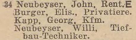John Neubeyser. Książka adresowa z 1926 roku. Ze strony: wiki-de.genealogy.net.