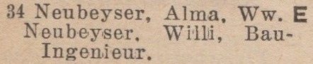Alma Neubeyser. Książka adresowa z 1939 roku. Zbiory Krzysztofa Gryndera.