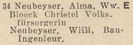 Alma Neubeyser. Książka adresowa z 1934 roku. Zbiory Pomorskiej Biblioteki Cyfrowej.
