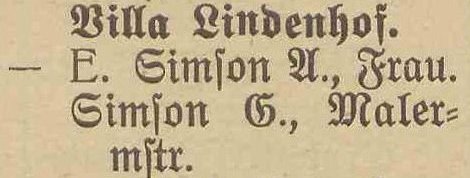 Villa Lindenhof. A. Simson. Książka adresowa gminy Oliwa z 1910 roku. Zbiory Pomorskiej Biblioteki Cyfrowej.