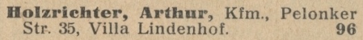Artur Holzrichter. Książka adresowa z 1926 roku. Ze strony: wiki-de.genealogy.net.