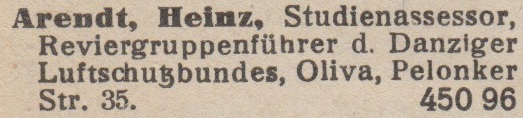 Heinz Arendt. Książka telefoniczna z 1937 roku. Zbiory TPG Strefa Historyczna WMG.
