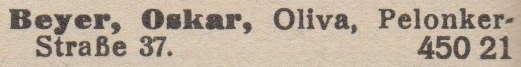 Oskar Beyer. Książka adresowa gminy Oliwa z 1921 roku. Zbiory Pomorskiej Biblioteki Cyfrowej.