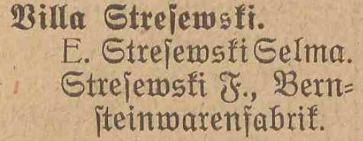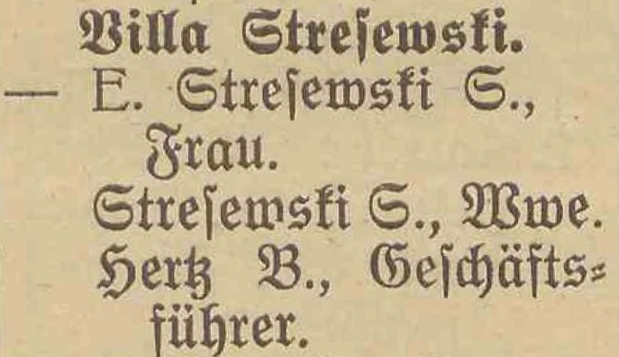Villa Stresewski. Książka adresowa gminy Oliwa z 1909 roku. Zbiory Pomorskiej Biblioteki Cyfrowej.