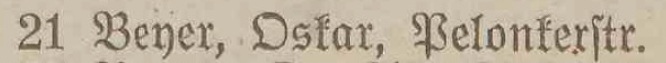 Oskar Beyer. Książka telefoniczna z 1921-1922 roku. Tel. nr. 21. Zbiory Pomorskiej Biblioteki Cyfrowej.