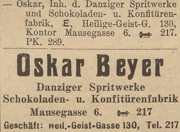 Oskar Beyer. Książka adresowa z 1926 roku. Ze strony: wiki-de.genealogy.net.
