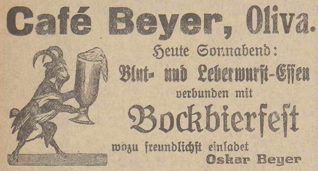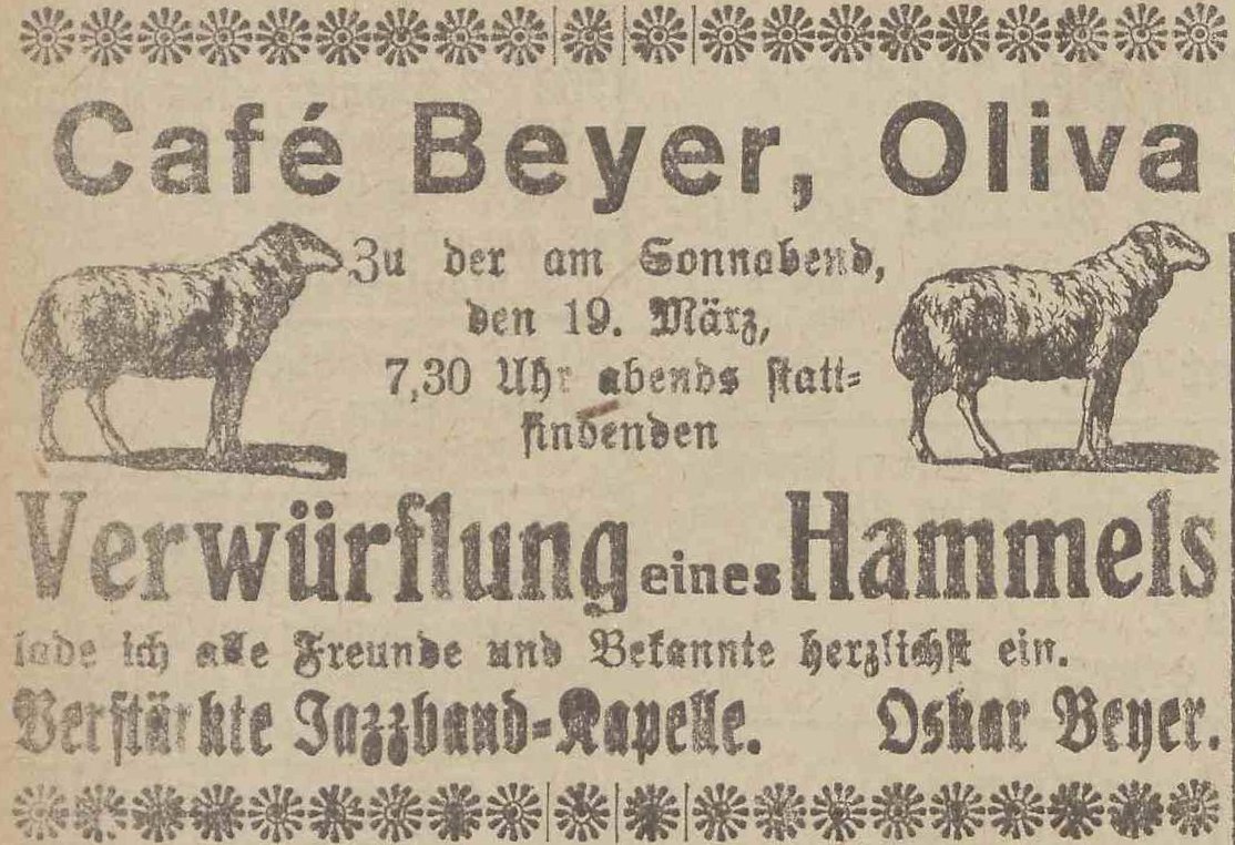 Café Oskar Beyer. Olivaer Zeintung nr 75-76 z 29-31. 03. 1923 r.