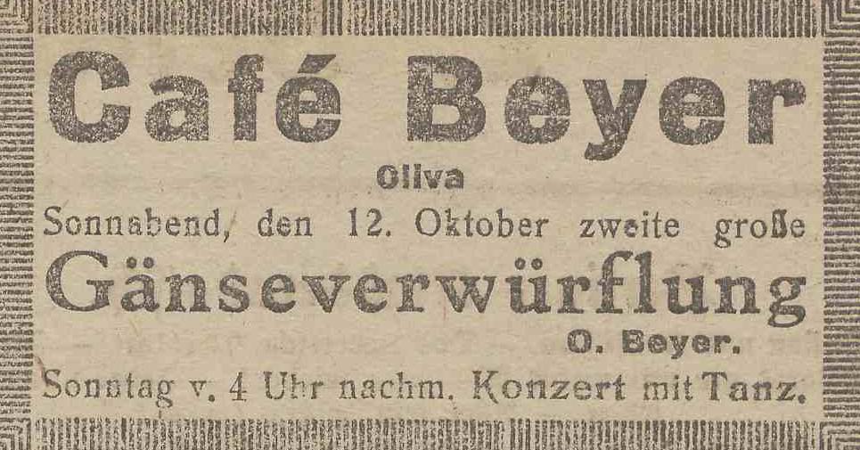 Café Oskar Beyer. Olivaer Zeintung nr 240 z 12. 10. 1929 r.