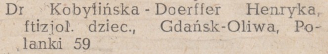 Dr Kobylińska-Doerffner Henryka - lek. chor. dziecięcych. Skoro-widz inf. z marca 1946 roku. Zbiory Mirosława Piskorskiego.
