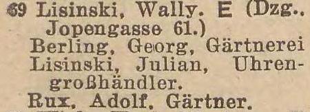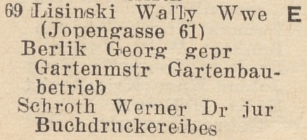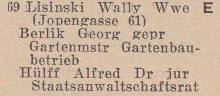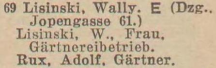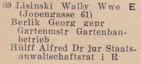 Wally Lisinski. Książka adresowa z 1926 roku. Ze strony: wiki-de.genealogy.net.