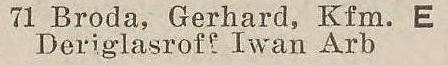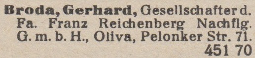 Gerhard Broda. Książka adresowa z 1931 roku. Zbiory Pomorskiej Biblioteki Cyfrowej.