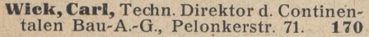Karl Wick. Książka adresowa z 1926 roku. Ze strony: wiki-de.genealogy.net.