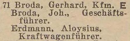 Gerhard Broda. Książka adresowa z 1933 roku. Zbiory Pomorskiej Biblioteki Cyfrowej.
