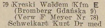 Kreski (Bromberg - Bydgoszcz). Książka adresowa z 1937-1938 roku. Zbiory Piotra Mazurka.