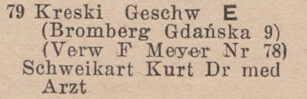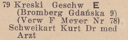 Kreski (Bromberg - Bydgoszcz). Książka adresowa z 1939 roku. Zbiory Krzysztofa Gryndera.