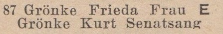 Frieda Grönke. Ksi¹¿ka adresowa z 1937-1938 roku.