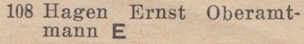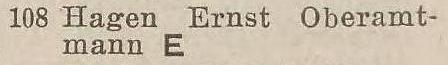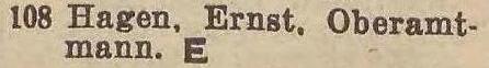 Ernst Hagen. Książka adresowa z 1926 roku. Ze strony: wiki-de.genealogy.net.