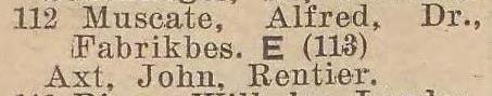 Właścicielem Axthof był od około 1919 roku Alfred Muscate (ur. 1881, zm. 1968) - właściciel tej posesji do około 1939 roku (zobacz ul. ).