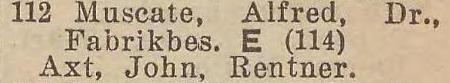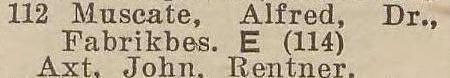 Alfred Muscate. Książka adresowa z 1933 roku. Zbiory Pomorskiej Biblioteki Cyfrowej.