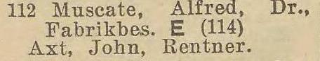 Alfred Muscate. Książka adresowa z 1929 roku. Zbiory Pomorskiej Biblioteki Cyfrowej.