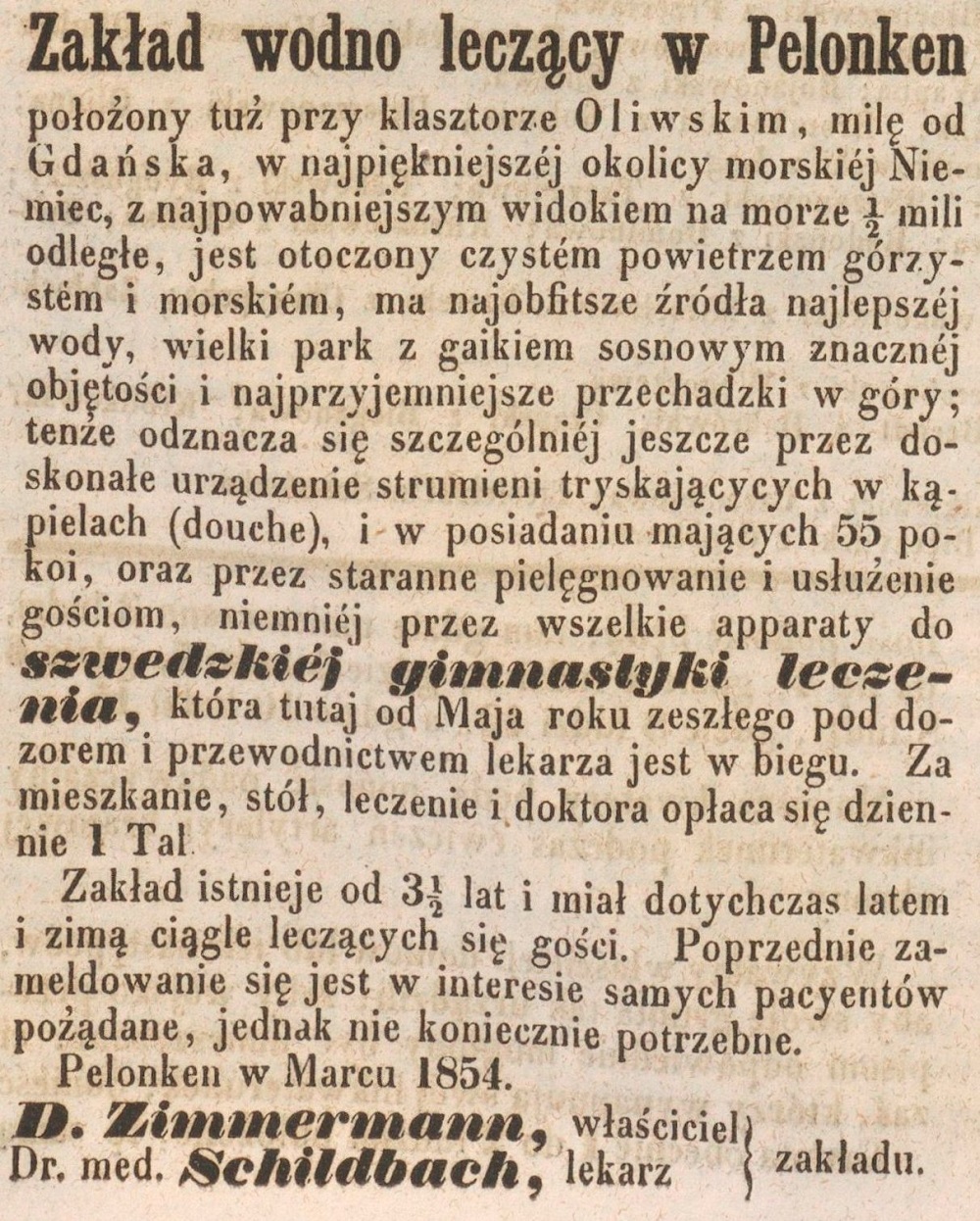 Dwór III. Reklama z Danziger Volks-Kalender, 1857 rok. Zbiory Mirosława Piskorskiego.