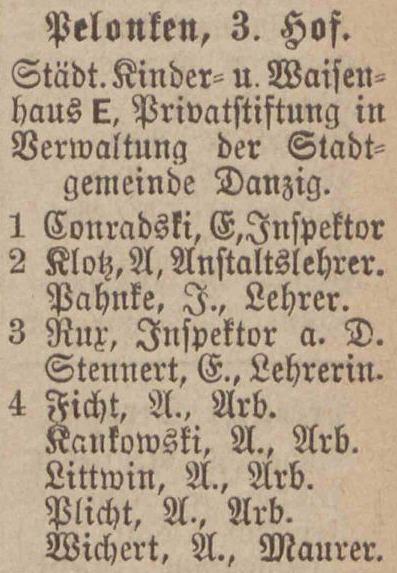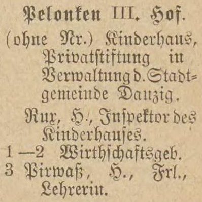 Kinderhaus, Privatstiftung in Verwaltung b. Stadtgemeinde Danzig. Rux. Pirwaß. Książka adresowa z 1899 roku. Przekazała Grażyna Niemyjska. Zbiory PBC.