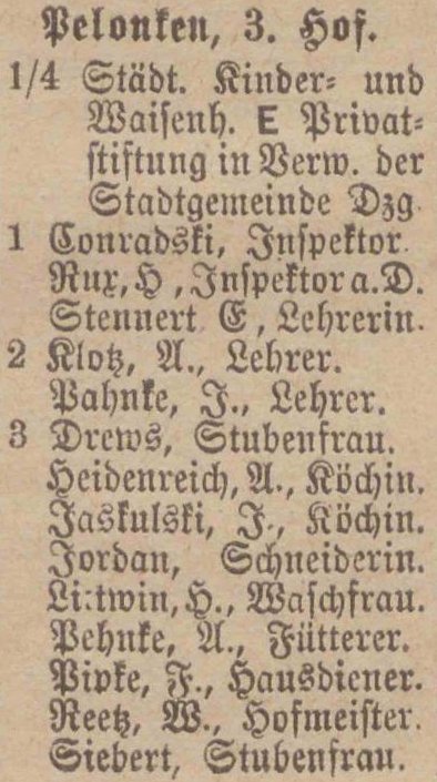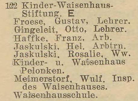 Pelonken Hof 4. Kinder & Waisenhaus. Około 1870-1890 r. Wykład Andrzeja Januszajtisa z 2013 r.