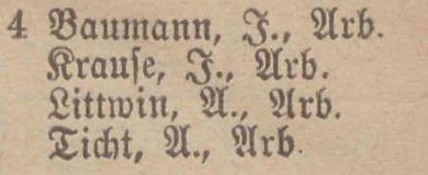 Derks, Johann, Arbeiter. Fleimming, Josef, Arbeiter. Küchler, August, Arbeiter. Müller, Johann, Arbeiter. Walther, Friedrich, Seemannt.