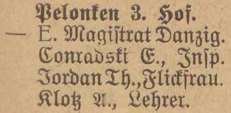 W 1901 roku letników przymował/a Gey, Pelonken III hof, (Olivaer Nachrichten, ).