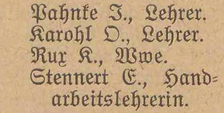 Klotz, Adolf, Lehrer. Pahnke, Julius, Lehrer. Reetz, Wilhelm, Hofmeister.