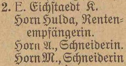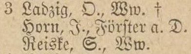 Horn, Julius, Förster a. D. Ladzig, Olga, geb. Berschau, Ww., Rentiere.