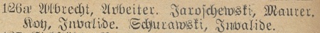 Schulz, Carl, Schmied. Wendt, Johann, Mühlenwerff. Meirohnke, Johann, Maurer. Grönkowski, August, Pensionair.