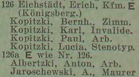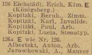 Kopitzki, Kasimir, pomicnik handlowy (Handlungsgehilfe).