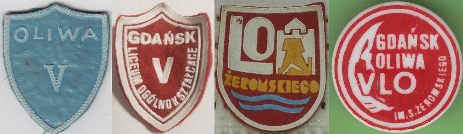 Tarcze z V Liceum Ogólnokształcącego w Gdańsku - Oliwie. Zbiory: Kuba Kowalski, Allegro.pl, Piotr Leżyński.